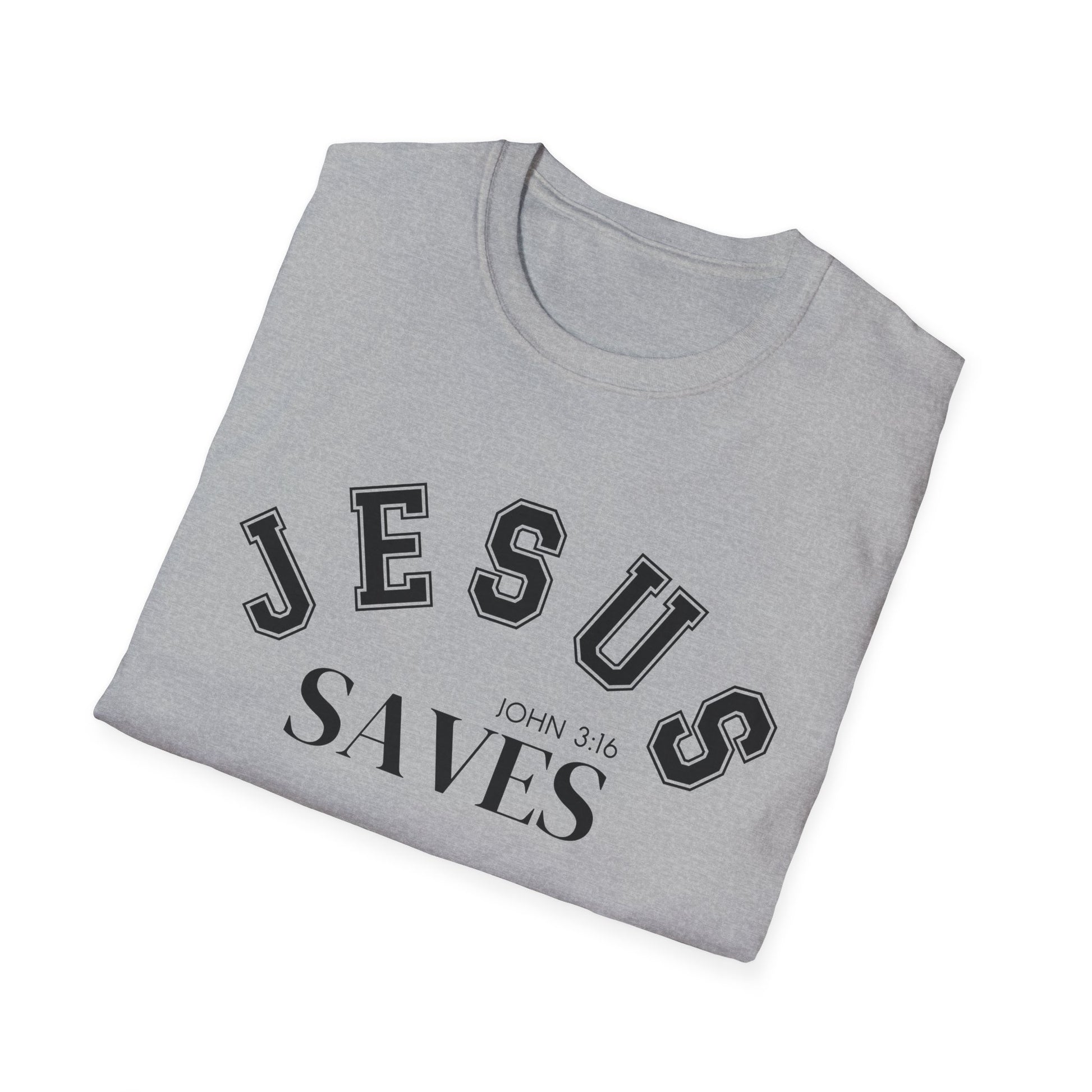 Jesus Saves Unisex Softstyle T-Shirt, Inspirational Graphic Tee, Christian Apparel, Faith-Based Gift, Casual Wear