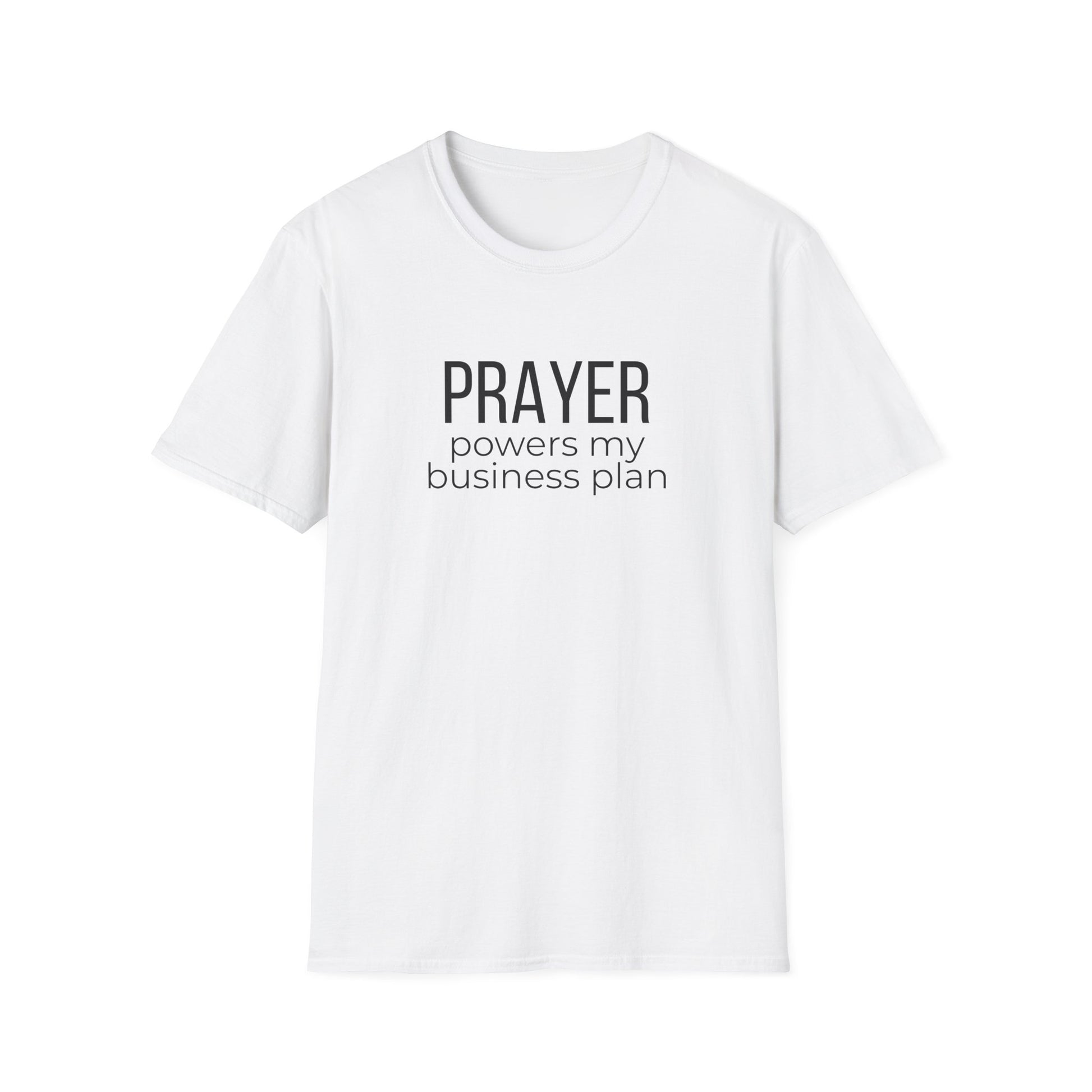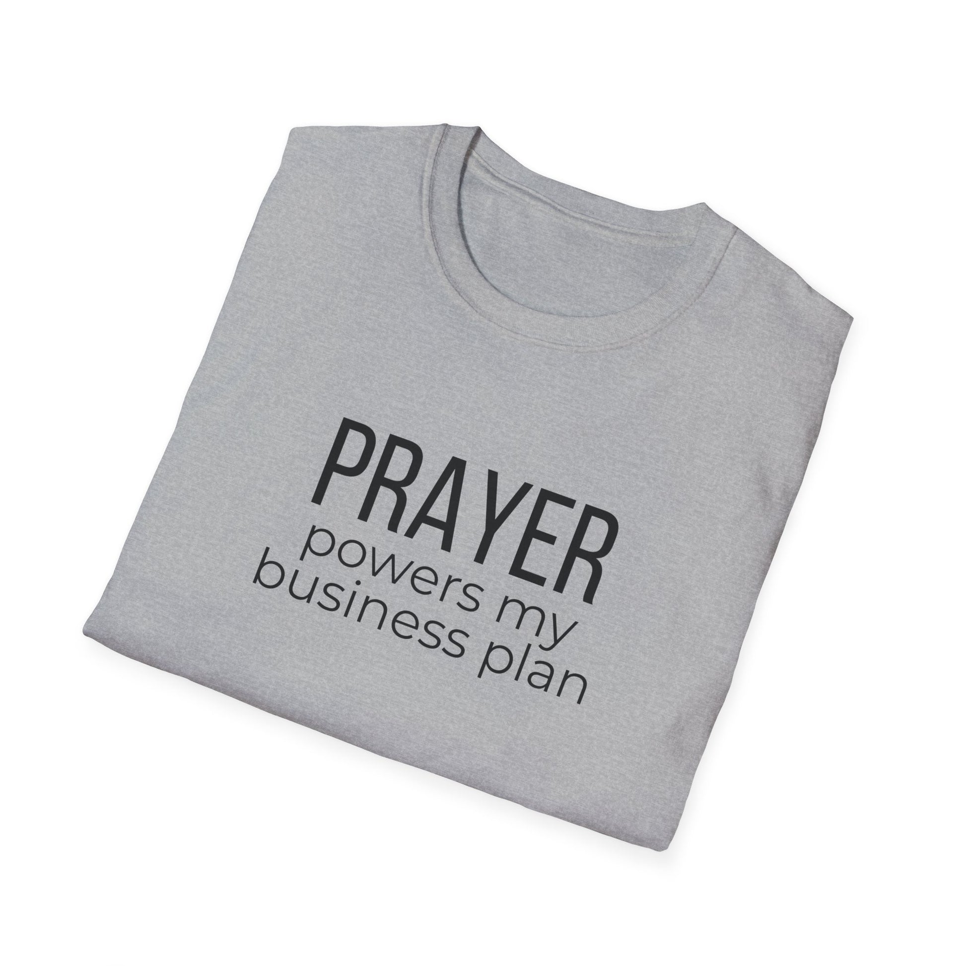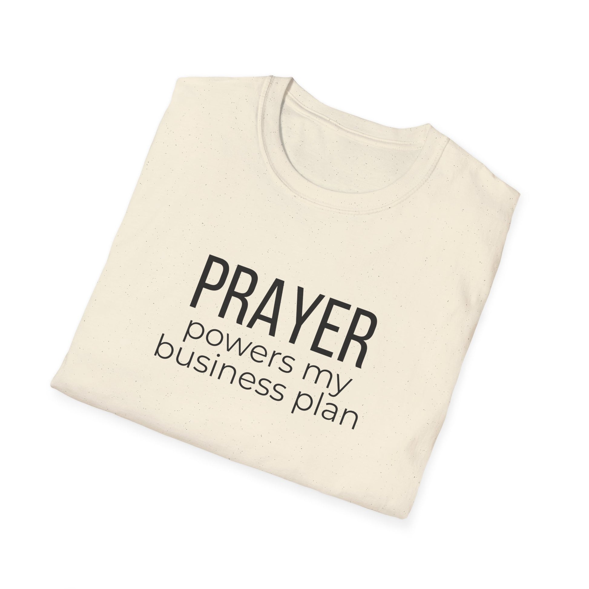 This lightweight cotton tee reads like a quiet declaration: “PRAYER powers my business plan.” It’s for the entrepreneur who blends faith with hustle, the founder who starts mornings with scripture and spreadsheets. The simple, centered typography keeps the message clear and calm — easy to wear to meetings, church gatherings, or a focused day at the co‑working space. Breathable ring‑spun cotton and a classic crew cut let you layer it under a blazer or wear it solo while you sketch ideas, take calls, or pray over your next step. The understated design speaks confidence without shouting, and the soft fabric keeps you comfortable through long work sessions or weekend rest.